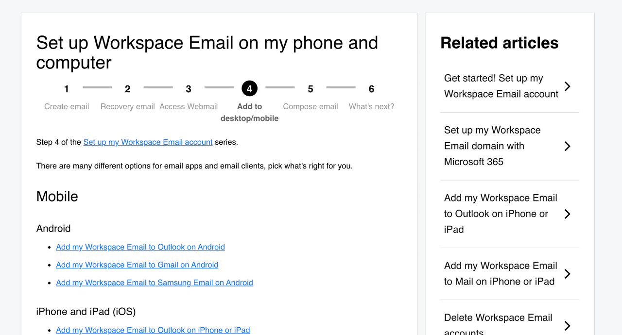 Helpful page with settings for most mobile phones, Outlook & computers.